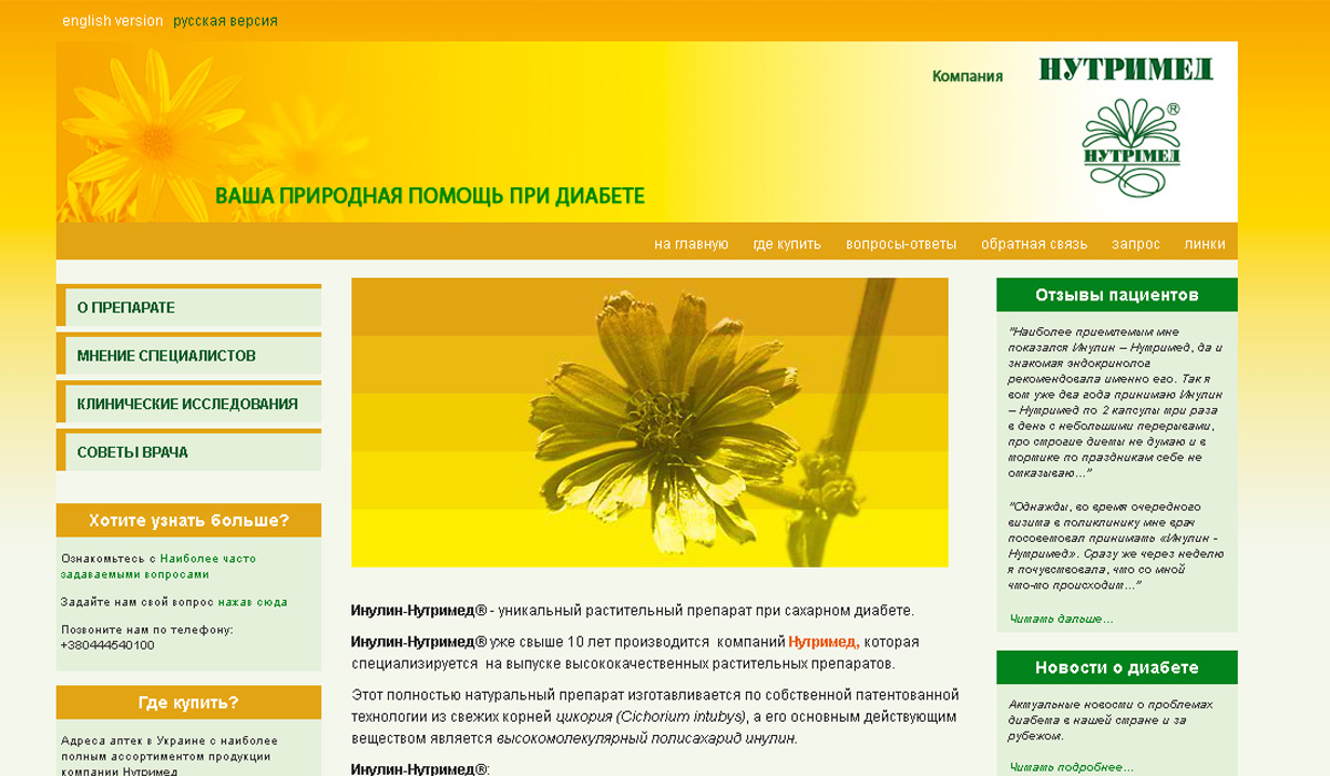 Начал работать новый сайт www.inulin-nutrimed.com, посвященный препарату ИНУЛИН-НУТРИМЕД®.